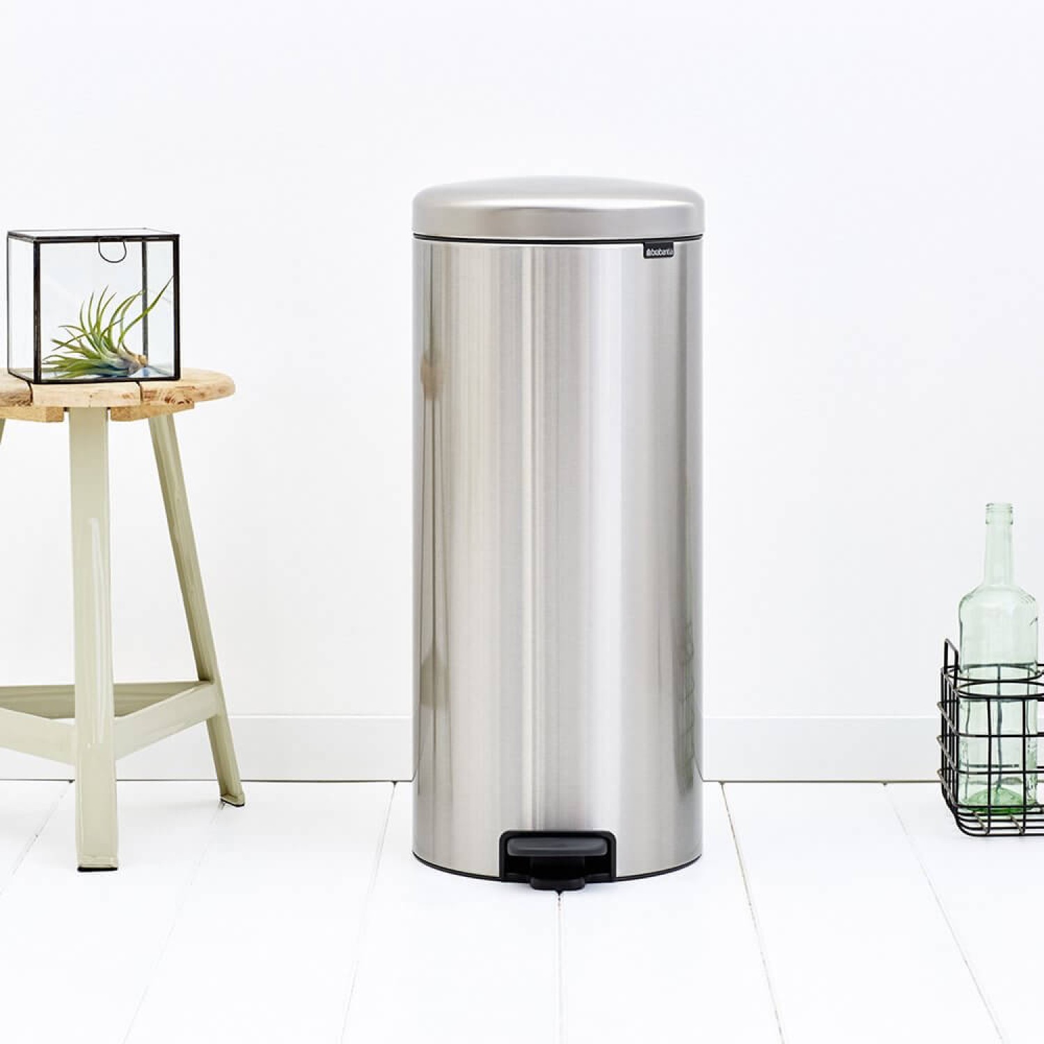 Brabantia Pedal bin newicon, 30 litre, plastic bucket matt steel fingerprint proof- Soft closure and super-light pedal operation.