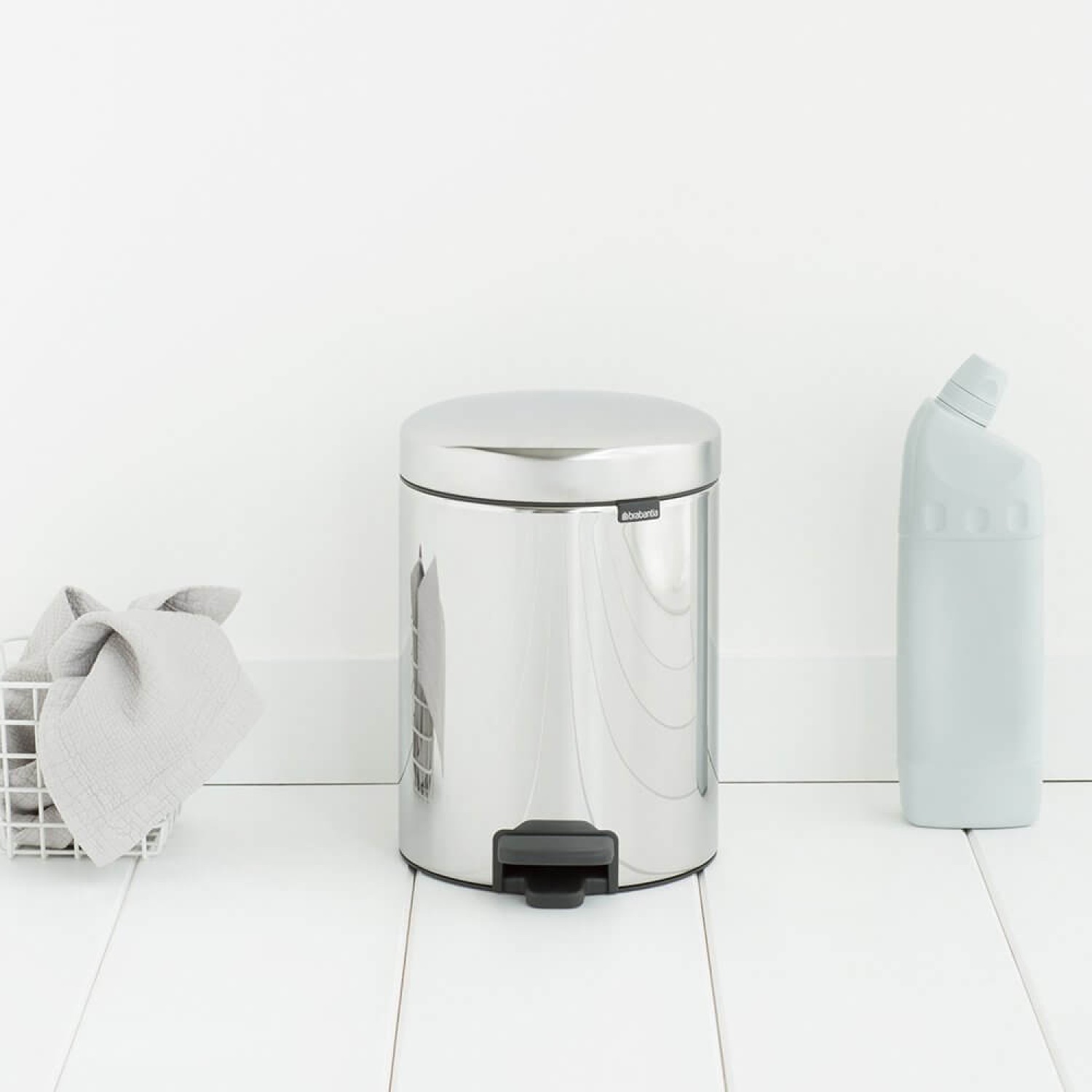 Brabantia Pedal bin newicon, 5 litre, plastic bucket brilliant steel