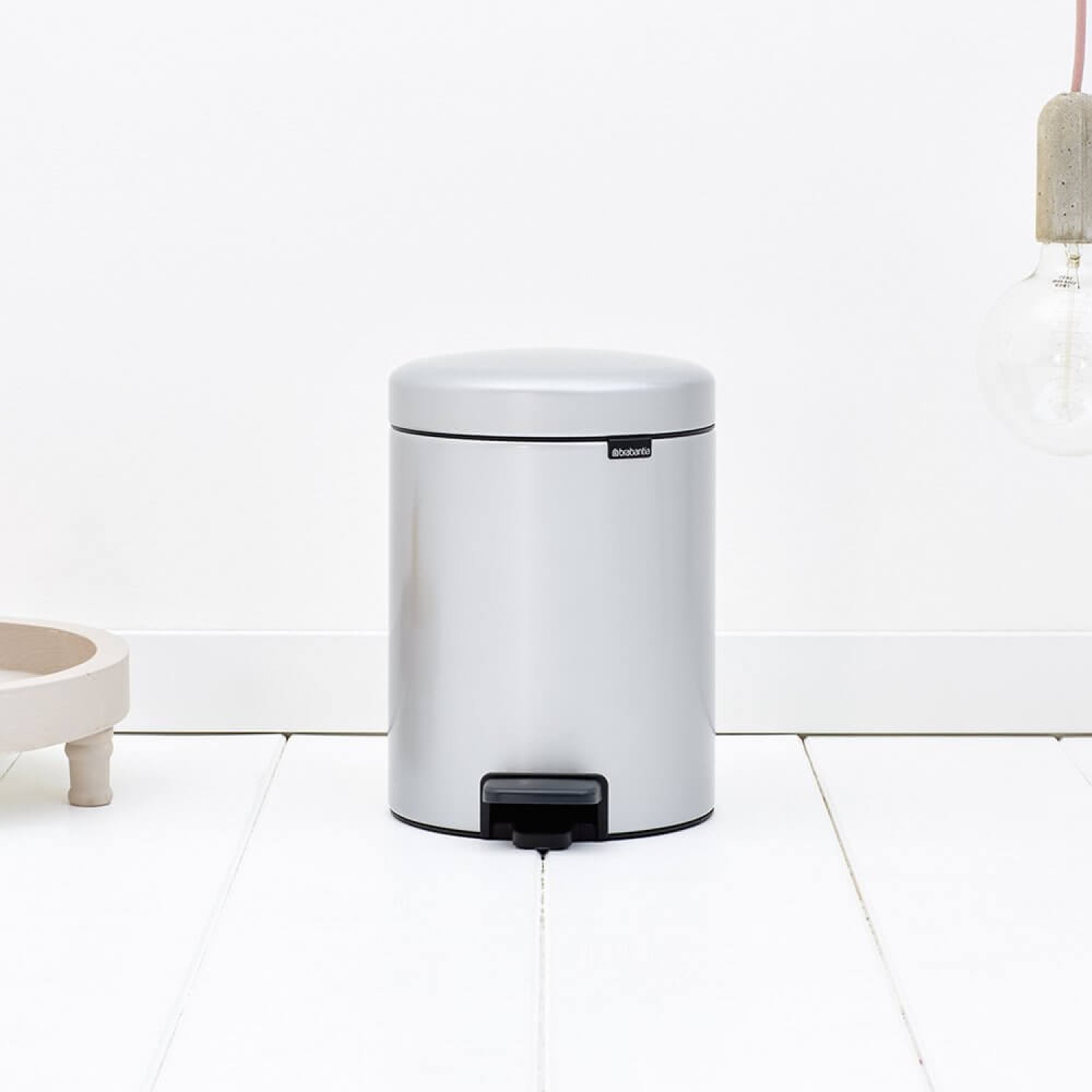 Brabantia Pedal bin newicon, 5 litre, plastic bucket metallic grey