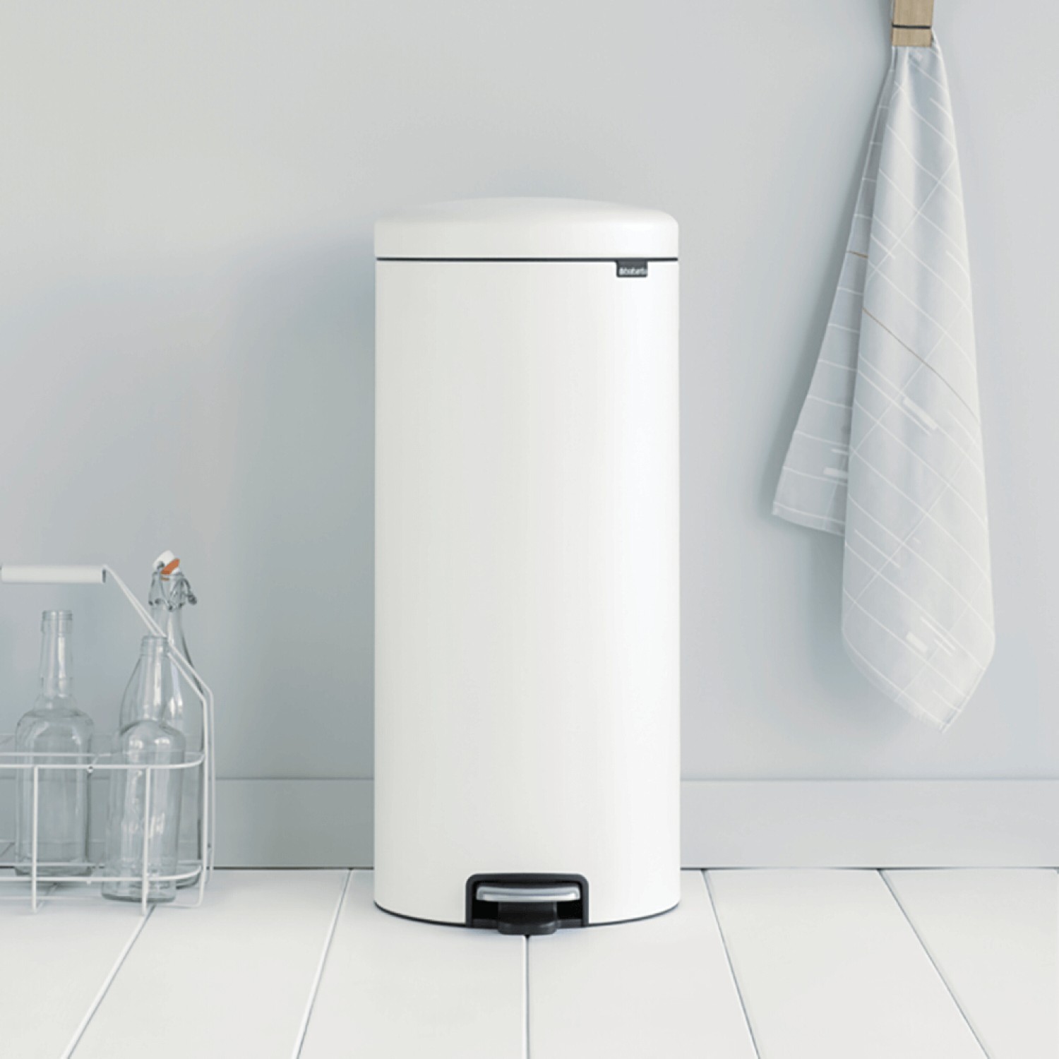 Brabantia Pedal bin newicon, 30 litre, plastic bucket mineral eternal white
