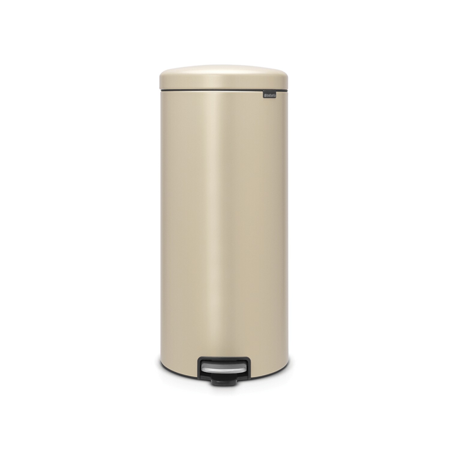 Brabantia Pedal bin newicon, 30 litre, plastic bucket mineral golden beach- Soft closure and super-light pedal operation.