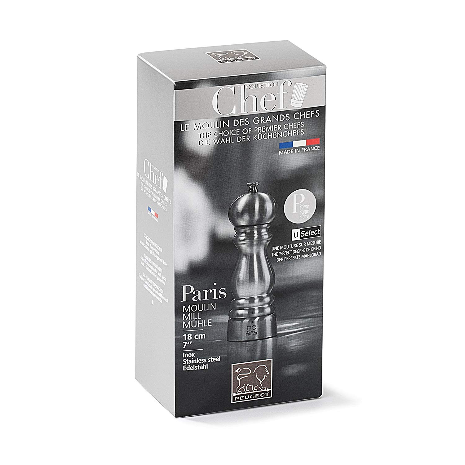 Peugeot Μύλος πιπεριού stainless steel, u'select 6x6x18 cm σειρά Paris St-Steel